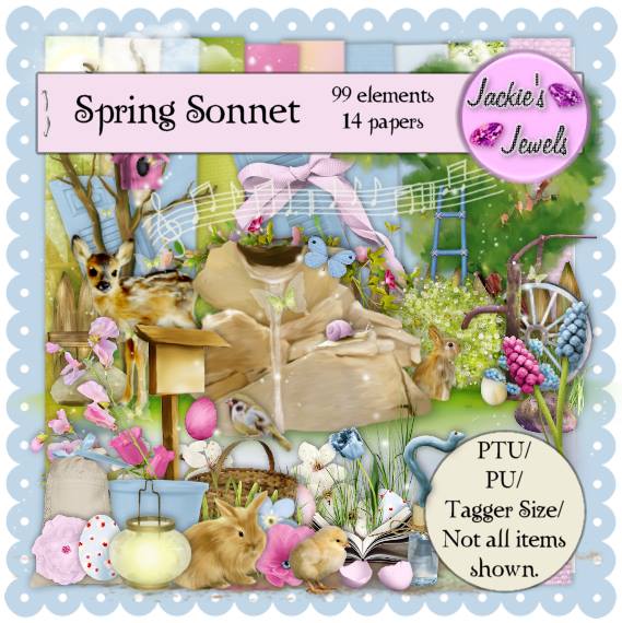 All kits are on sale for 30% off for the month of April! Be sure to check out everything she has to offer as well as her two new AMAZING kits, Spring Sonnet & Dew Drop Forest.